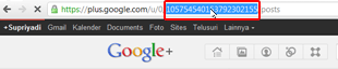 Bagi yang belum tahu cara mengetahui ID Google+ anda, klik pada nama Profil anda, lalu lihat pada alamat browser anda. Lihat angka yang tertera di sana. Sebagai gambaran lihat gambar di bawah ini: